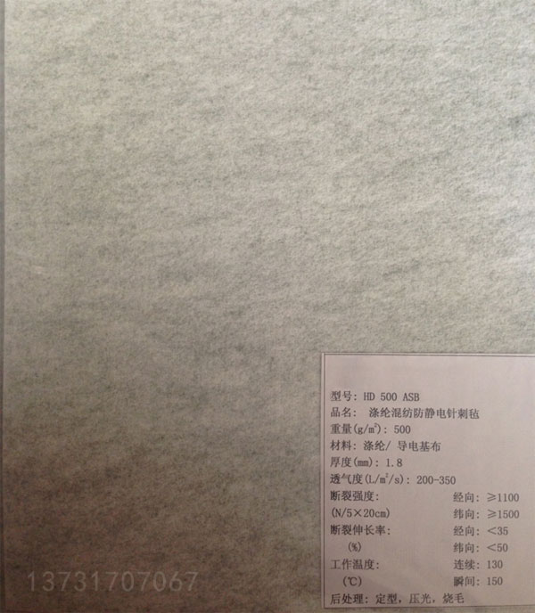 生產(chǎn)抗靜電濾布除了具有生產(chǎn)普通針刺氈的工藝外,還要求在生產(chǎn)針刺氈的基布的經(jīng)紗中并入導(dǎo)電纖維紗或在化學(xué)纖維中混入導(dǎo)電纖維等導(dǎo)電材料,我廠這兩種類型的抗靜電濾布均可生產(chǎn)。