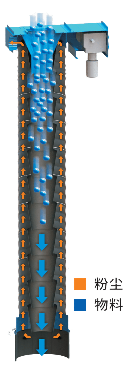 獨特的設計,全自動智能控制系統(tǒng)使得底部防塵裙邊始終緊貼料堆,確保底部沖擊性粉塵無法外溢;外置的吸塵系統(tǒng),可以確保防塵罩內部形成負壓,進一步防止產生粉塵污染。