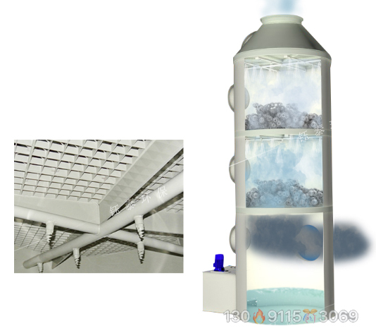 廢氣噴淋凈化塔的工作原理是將氣體中的污染物分離成無(wú)害物質(zhì),以達(dá)到凈化氣體的目的,屬于差動(dòng)接觸逆流,塔體填料是氣液接觸的基本組成部分。進(jìn)入塔體的氣體進(jìn)入塔體后,氣體進(jìn)入填料層