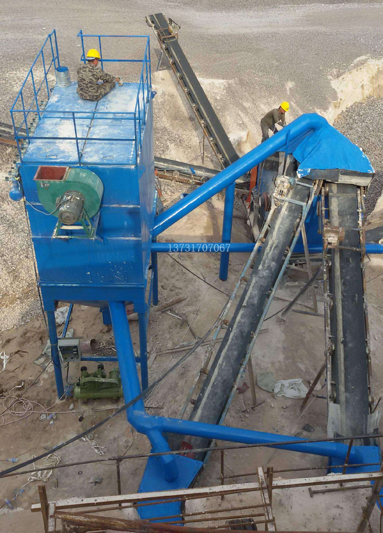我公司為石料廠、礦山、選礦廠配套生產(chǎn)的砂石破碎篩分生產(chǎn)線粉塵收集布袋除塵器,多項先進技術(shù)通過OO,不僅提高了除塵器粉塵的收集能力和過濾精度,而且該除塵器采用了分箱大口徑脈沖閥,反吹式清灰,換袋時,可打開頂部蓋子直接抽出濾袋,維護簡單、方便。避免了噴吹式袋式除塵器換袋時需要拆除噴吹管、文丘里管等繁瑣過程。