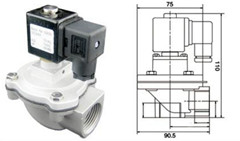 DMF-Z型直角式電磁脈沖閥(又稱(chēng)直角式電磁閥,直角式脈沖閥,直角式閥),進(jìn)出氣口連接孔為寸制管螺紋結(jié)構(gòu)。