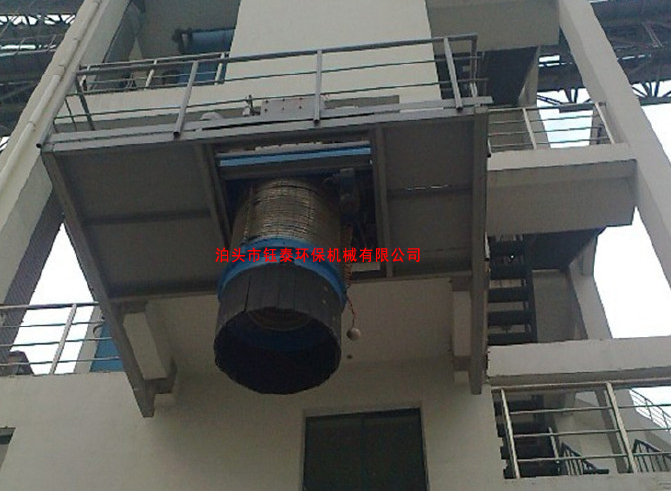 伸縮溜管采用雙層套管結(jié)構(gòu),由溜筒和防塵罩構(gòu)成。溜筒內(nèi)通過(guò)物料,防塵罩外套在溜筒上,期間行程吸塵腔。無(wú)塵伸縮溜管底部將設(shè)料位傳感器和防塵群罩。料位傳感器將設(shè)在外側(cè)或內(nèi)側(cè),防塵群罩將采用分塊重疊式。在裝車(chē)過(guò)程中料位傳感器接觸物料后,無(wú)塵伸縮溜管將及時(shí)提升使料頂與堆積的物料始終保持一定距離。防塵罩能罩在料堆上,以保證吸塵效果,防止粉塵外溢。溜筒將采用附有聚氨酯耐磨襯板的鋼板制成,防塵罩采用防靜電柔軟強(qiáng)度大的化纖材料制成。防塵罩內(nèi)將設(shè)置支承骨架,既可上下伸縮,又可保證氣流通暢。伸縮溜管升降自如,無(wú)阻滯現(xiàn)象;在伸縮溜管底部將至少設(shè)3個(gè)吊點(diǎn),以保證升降機(jī)構(gòu)帶動(dòng)伸縮溜管平穩(wěn)升降。伸縮溜管外形尺寸圖/外伸縮防塵罩圖片