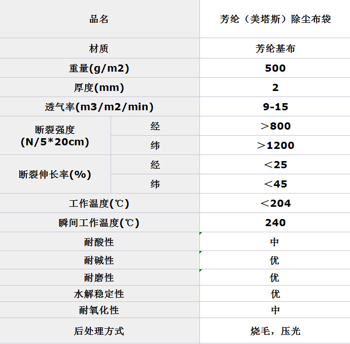 瀝青攪拌站美塔斯除塵布袋可在204度下連續(xù)使用,并可承受反復(fù)的250度瞬時(shí)波動(dòng)溫度,尺寸穩(wěn)定性好(250度時(shí)熱收縮率1%),防火性能好,400度時(shí)才分解碳化,不自燃也不助燃,低濃度的酸堿和大多數(shù)碳?xì)浠衔飳λ鼰o影響,良好的化學(xué)性,適用于瀝青混凝土攪拌瀝