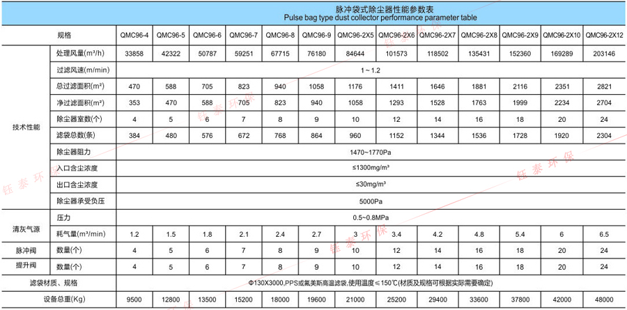 除塵清灰工作過程為:以一個袋為例,含塵氣體由進口處直接進入氣箱的袋室;由于有負壓風(fēng)機的引力驅(qū)動作用,含塵氣體由外及里,自下而上,克服阻力,穿越濾袋到達上部箱體;粉塵就會被阻擋在濾器組件之外,小的顆粒被吸附在濾芯的表面,大的顆粒直接掉到下面的灰斗中;經(jīng)過過濾后的含有微塵的氣體在脈沖提升閥處匯集,之后從出風(fēng)口排出,此時便是干凈的氣體。過濾狀態(tài)就是對含塵氣體進行除塵。當(dāng)過濾工作達到一定時間(或阻力達到預(yù)先設(shè)定值),清灰過程開始。其工作過程為:控制器發(fā)出信號,使脈沖提升閥關(guān)閉,阻斷排氣;壓縮空氣脈沖閥開啟,以大于0.5MPa的壓縮空氣經(jīng)脈沖閥噴入凈氣室;并迅速膨脹入濾袋內(nèi),并產(chǎn)生振動作用,清除濾袋外側(cè)表面上的粉塵,粉塵掉落到灰斗。這個動作完成后(大約6~15s),壓縮空氣脈沖閥關(guān)閉,提升閥重新打開,該箱室的濾袋重新回到過濾狀態(tài)。