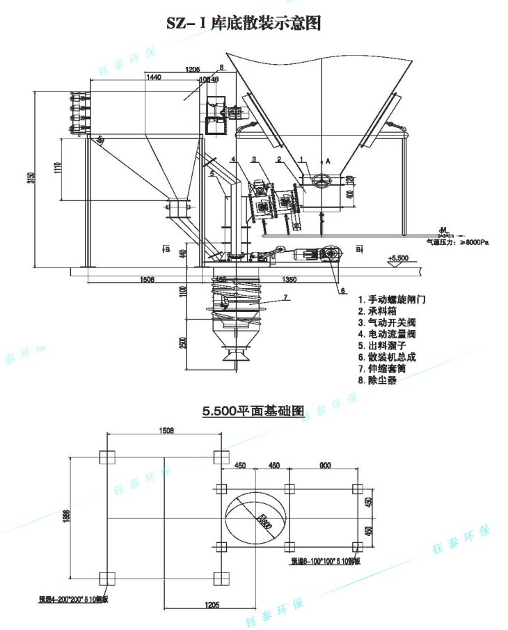 服務(wù)電話:13091153069(同微信) 汽車散裝機(jī)是將庫(kù)內(nèi)的粉料或骨料自動(dòng)無塵裝車的設(shè)備。汽車散裝機(jī)主要由手動(dòng)棒閥,電動(dòng)扇形閥,卷揚(yáng)裝置,伸縮卸料裝置、收塵軟管,電容式限位開關(guān),電控系統(tǒng)等部分組成。當(dāng)汽車進(jìn)入位置后,打開棒閥相應(yīng)的棒條數(shù)量。按住控制柜的“下降鈕”,下料頭到位后會(huì)自動(dòng)斷開升降電機(jī)電源,按“裝車鈕”進(jìn)入卸料狀態(tài),輔助配套設(shè)備會(huì)相應(yīng)開始工作,卸料產(chǎn)生的灰塵通過進(jìn)料斗,由伸縮收塵軟管進(jìn)入收塵器凈化,當(dāng)下料頭的物料裝滿時(shí),下料頭邊上升,邊報(bào)警,上升距離要在裝料前設(shè)置。若上升距1米,則將時(shí)間繼電器的時(shí)間調(diào)為T=1N。在上升過程中裝料始終在進(jìn)行,當(dāng)下料頭滿時(shí),再重復(fù)上述動(dòng)作,到達(dá)料滿位置后,按停車鈕,使電振機(jī)反制動(dòng),或關(guān)閉扇形閥下料停止工作,其它設(shè)備相應(yīng)停止工作。停車后可按上升按鈕讓下料斗離開物料一定距離,確保運(yùn)輸工具的移動(dòng),再對(duì)準(zhǔn)第二個(gè)卸料工位。直到整個(gè)料倉(cāng)裝滿為止